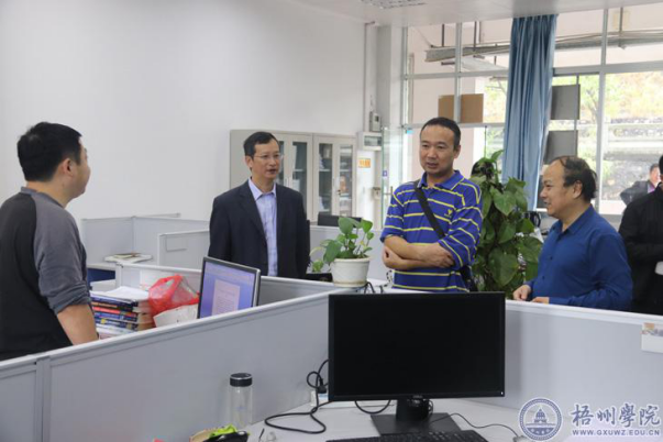 10月26日上午,广西壮族自治区教育厅科信处处长黄青云一行3人到我校就一流学科建设发展情况进行调研,先后参观了我校的数字媒体实验室、精密加工中心、大数据处理中心、智能控制实验室、信号处理实验室和软件开发中心等科研实验平台。学校副校长玉振明、麻新纯陪同考察了学校相关科研实验室,并介绍学校多个科研实验主要成果。